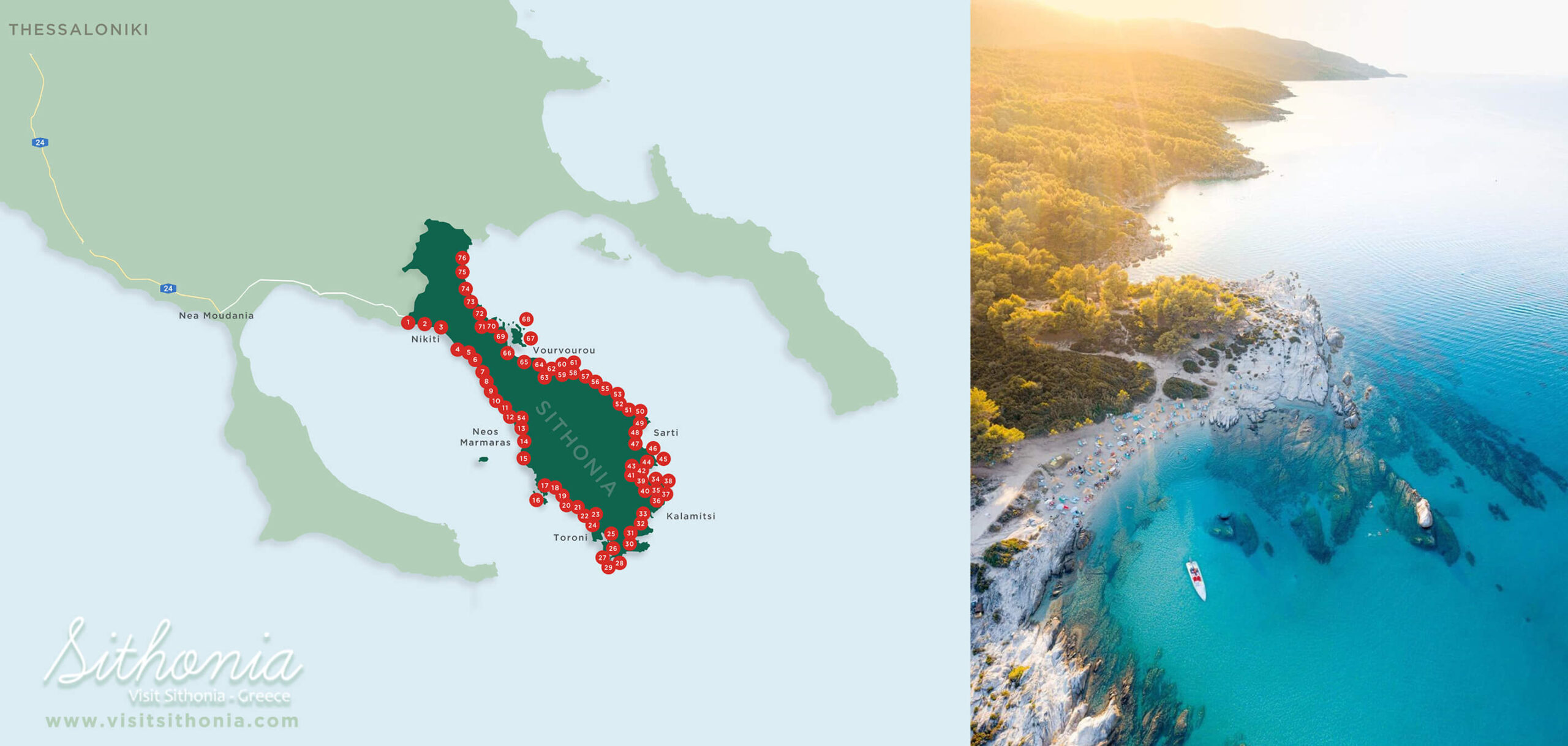 SITHONIA BEACHES MAP
